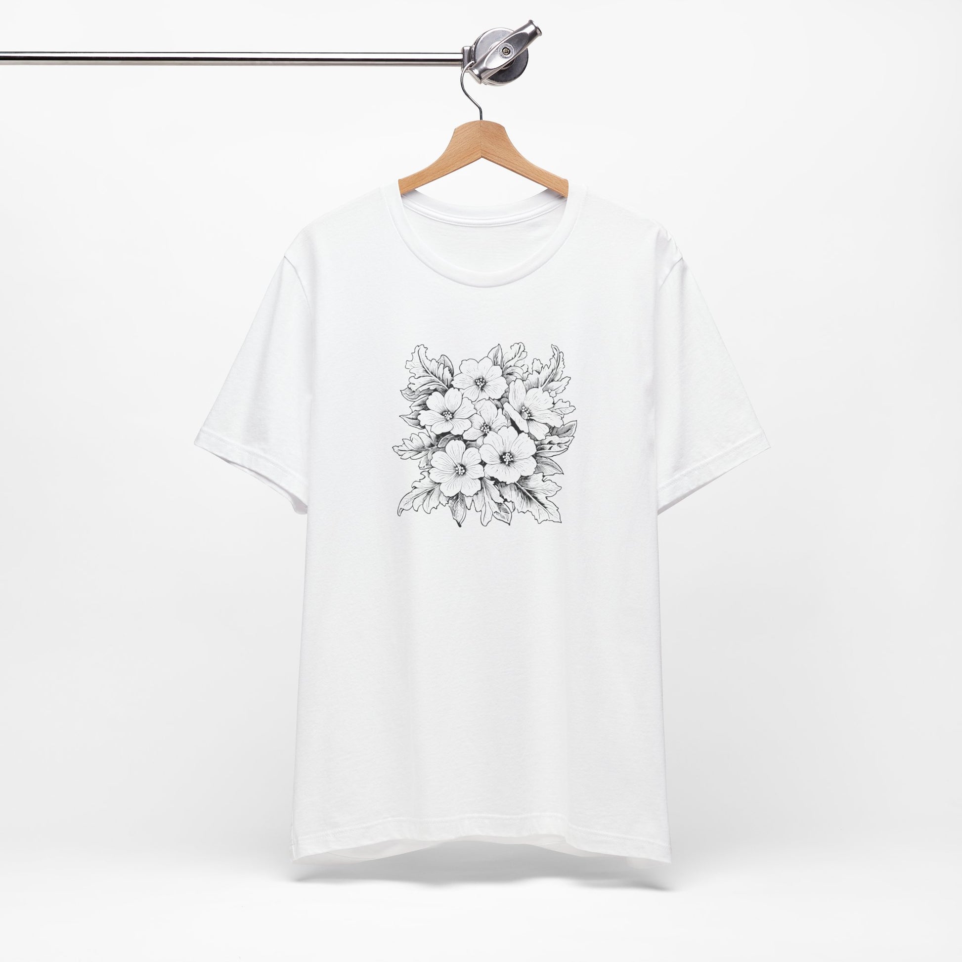 Let your outfit speak in quiet blooms and bold lines. This tee isn’t just clothing—it’s a statement of style, simplicity, and connection to the natural world.