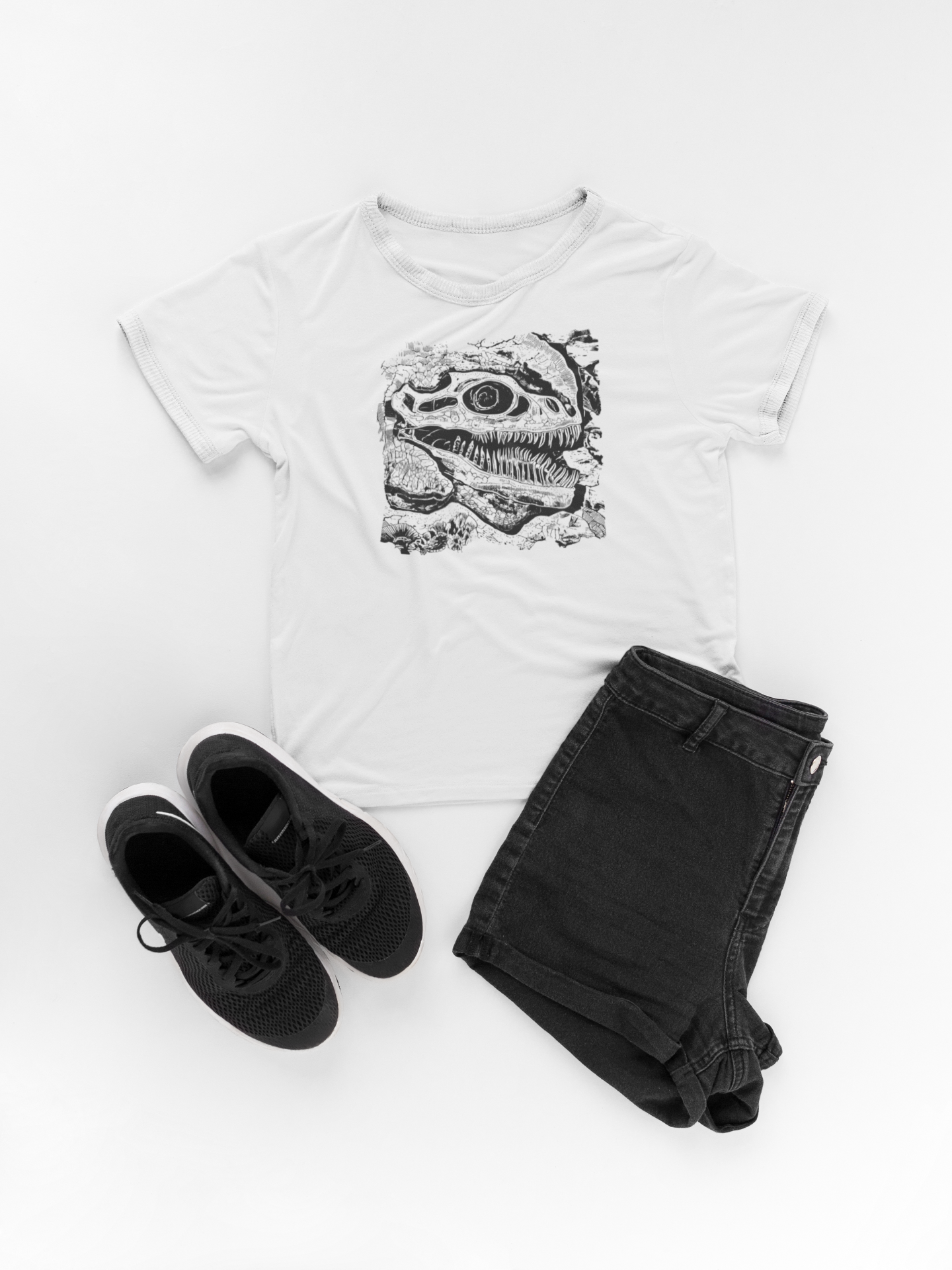 🦴 Fossil-inspired T-Rex skull design in stark black and white