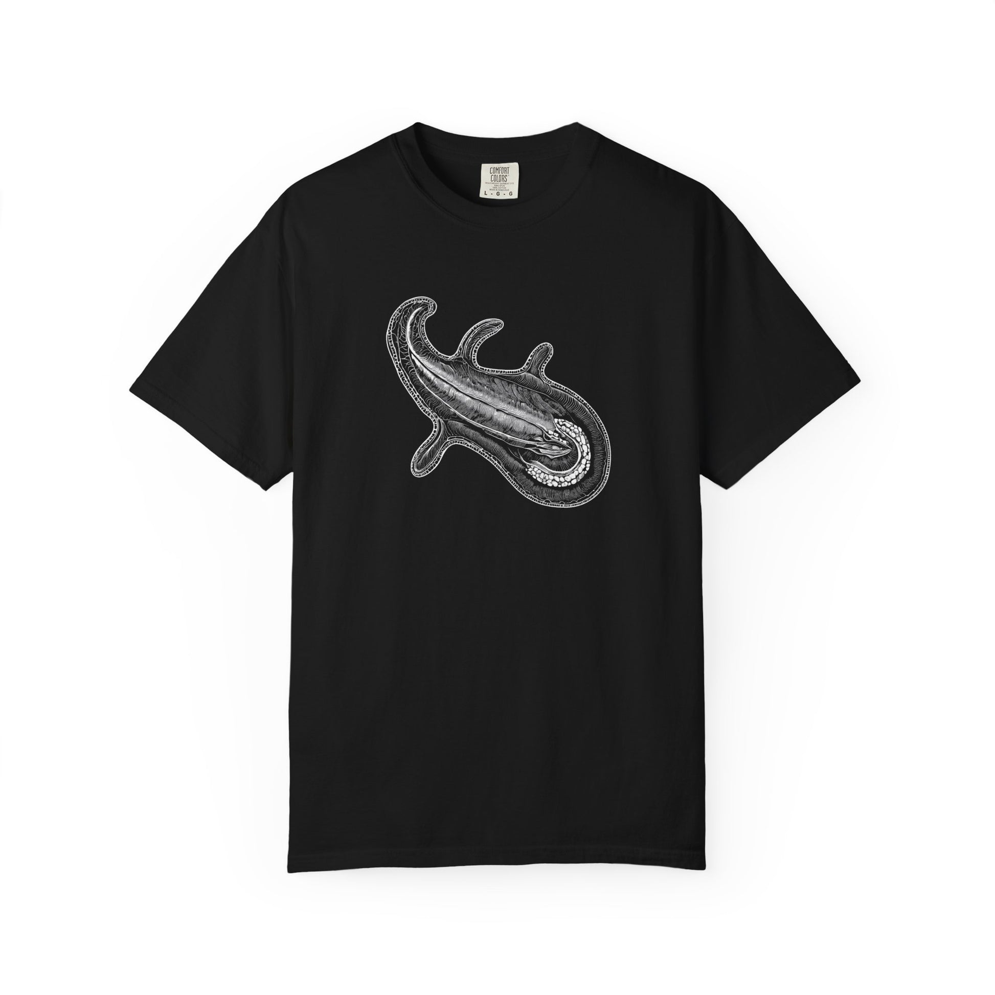 Inspired by the primal language of life before classification, this design channels ancient waters, slow evolution, and the poetry of early biology. It’s a shirt for the curious, the imaginative, the ones who wonder what the first breath might have looked like.