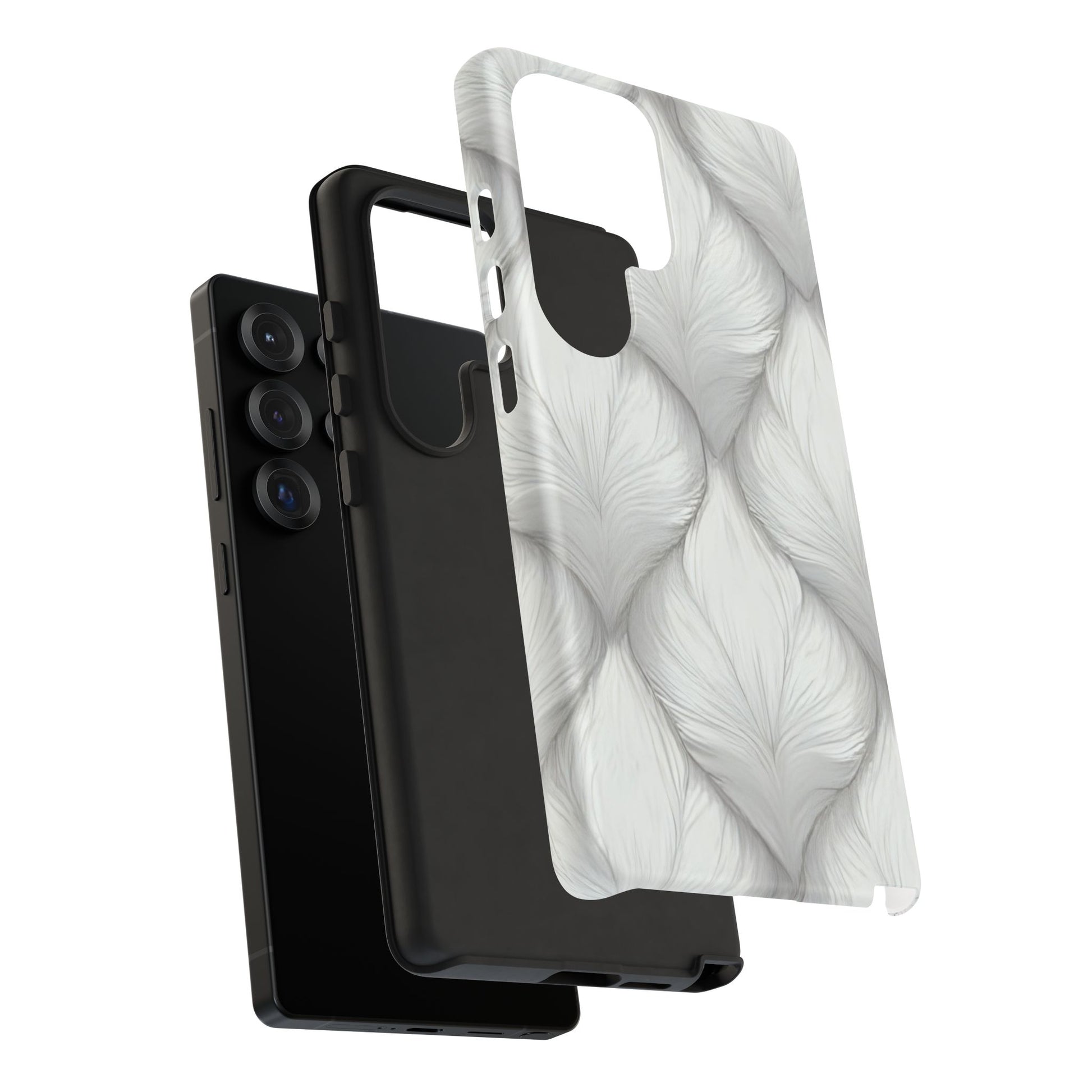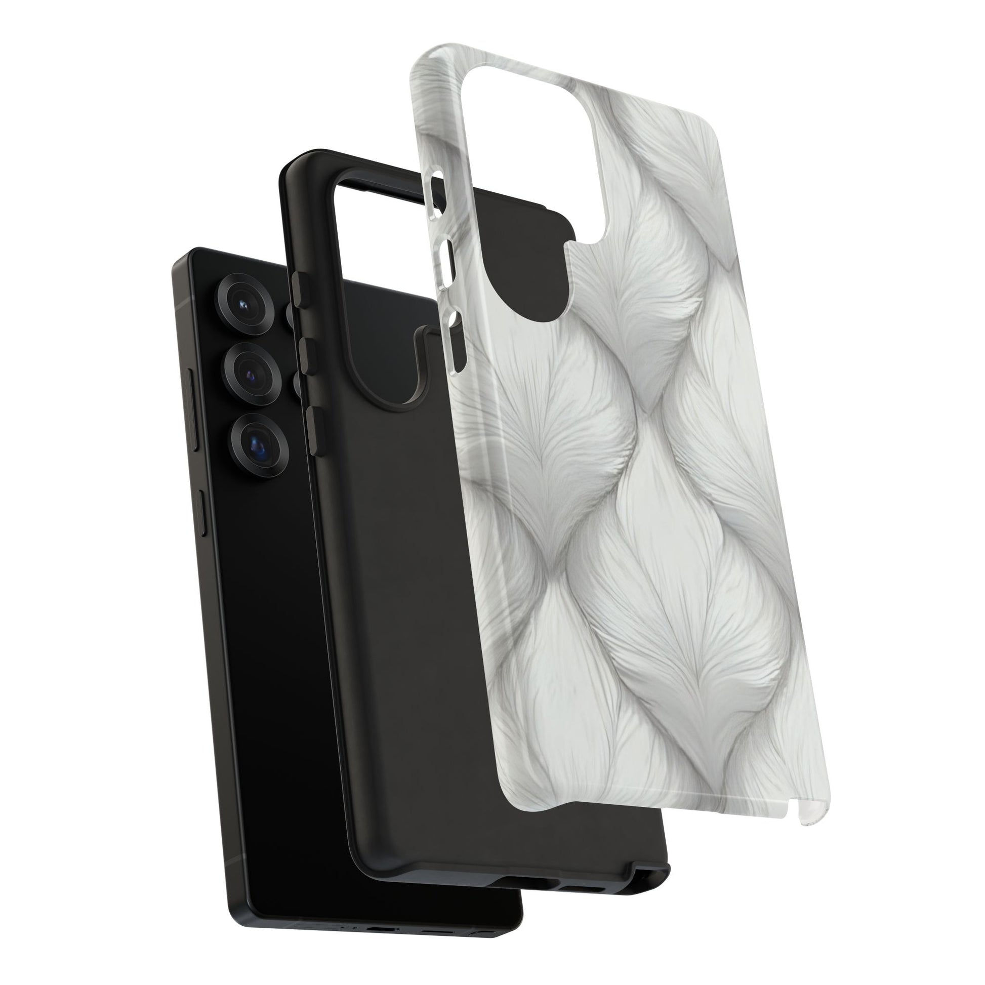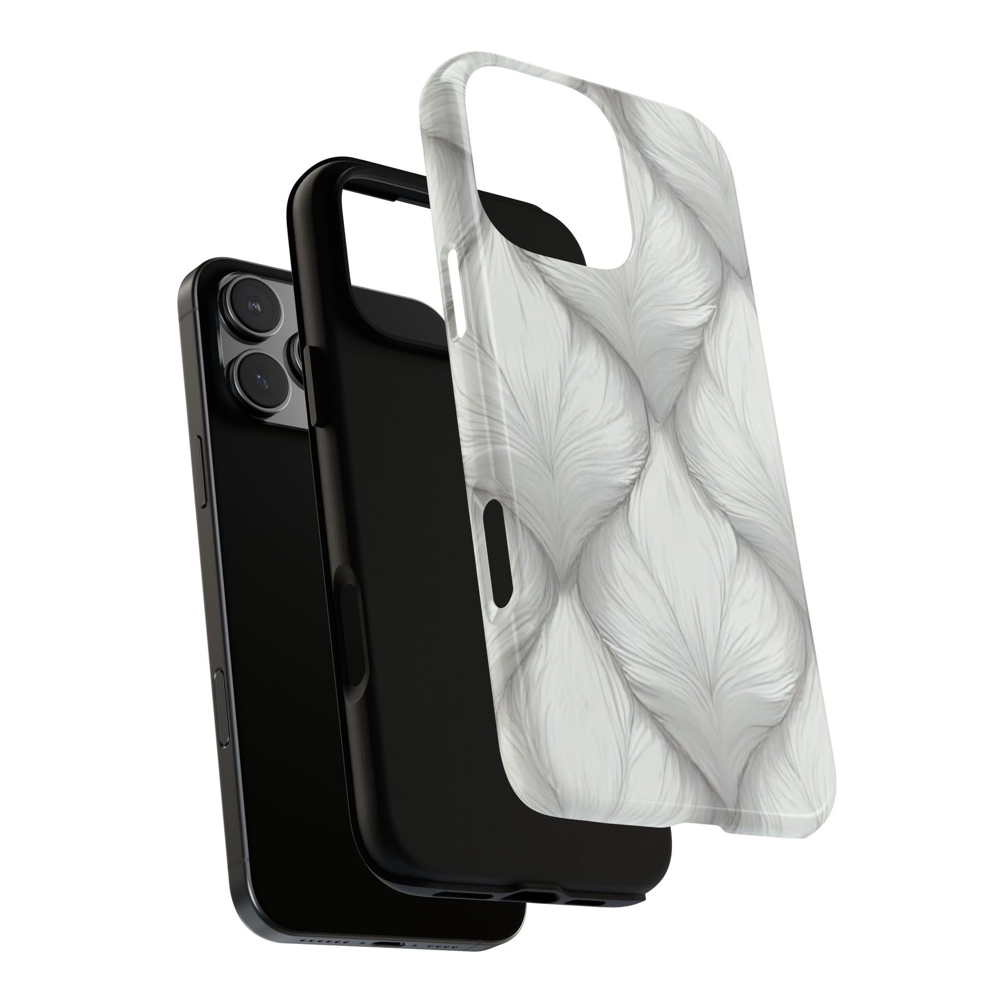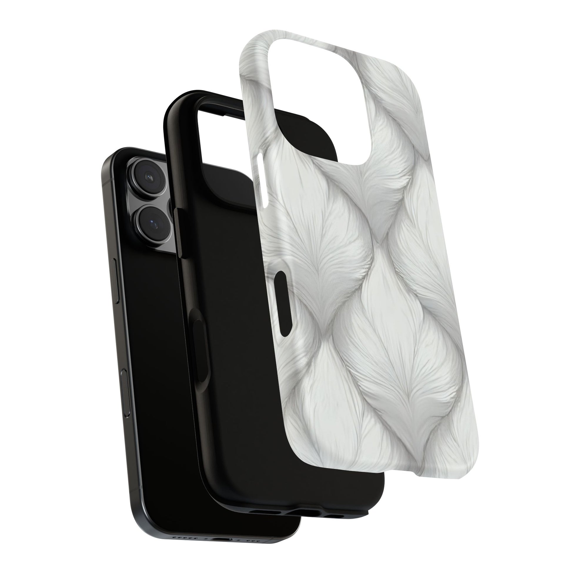Built for resilience, this case combines a silky matte finish with a rugged dual-layer design. A shock-absorbing silicone liner hugs your phone, while the outer shell displays its fur-like flow in a minimal, modern tone.