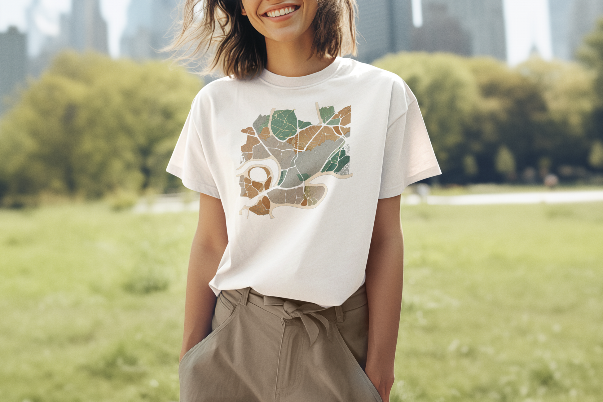 Where city planning meets natural rhythm—this Urban Cell No 105 T-Shirt transforms everyday wear into a dialogue between architecture and ecology. Inspired by botanical print patterns, topography line art, and sustainable fashion design, it carries the look of a city map sketched with leaves, rivers, and cellular forms.