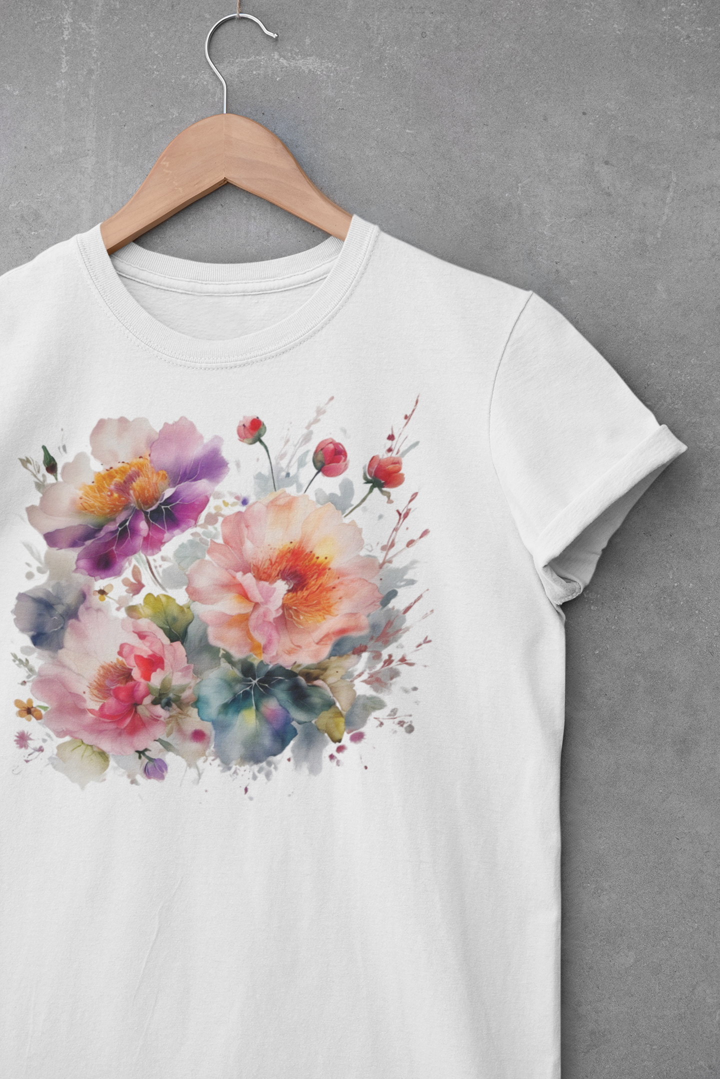 Let your style bloom with the soft poetry of the Watercolor Flowers T-shirt. This design features a tender bouquet rendered in dreamy watercolor strokes—each flower a wash of color, each petal a breath of beauty. With its elegant, hand-painted feel and calming aesthetic, it’s like wearing a moment of stillness beneath the sky.